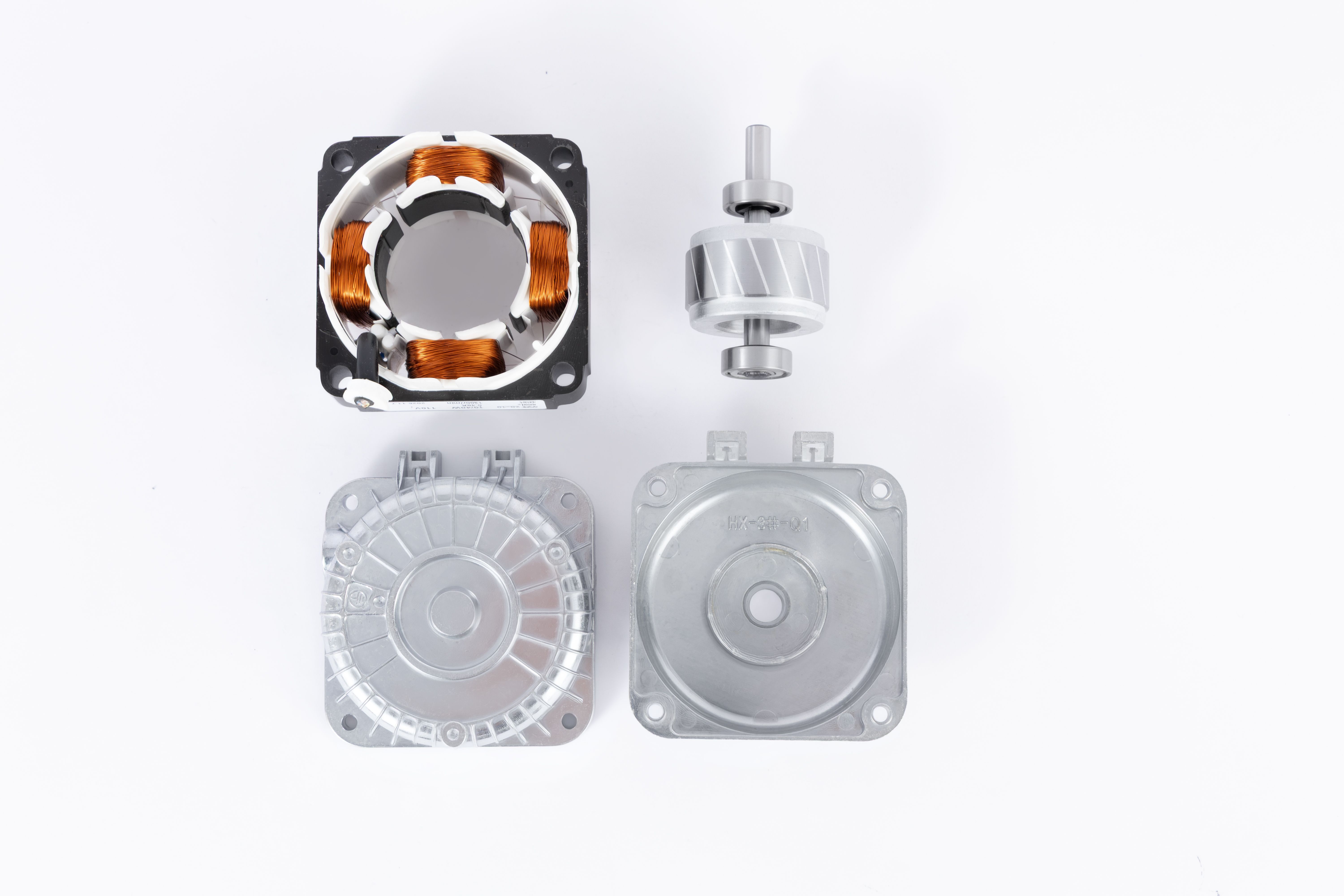support, aluminum fan blade, plastic fan blade, flange, mesh enclosure |